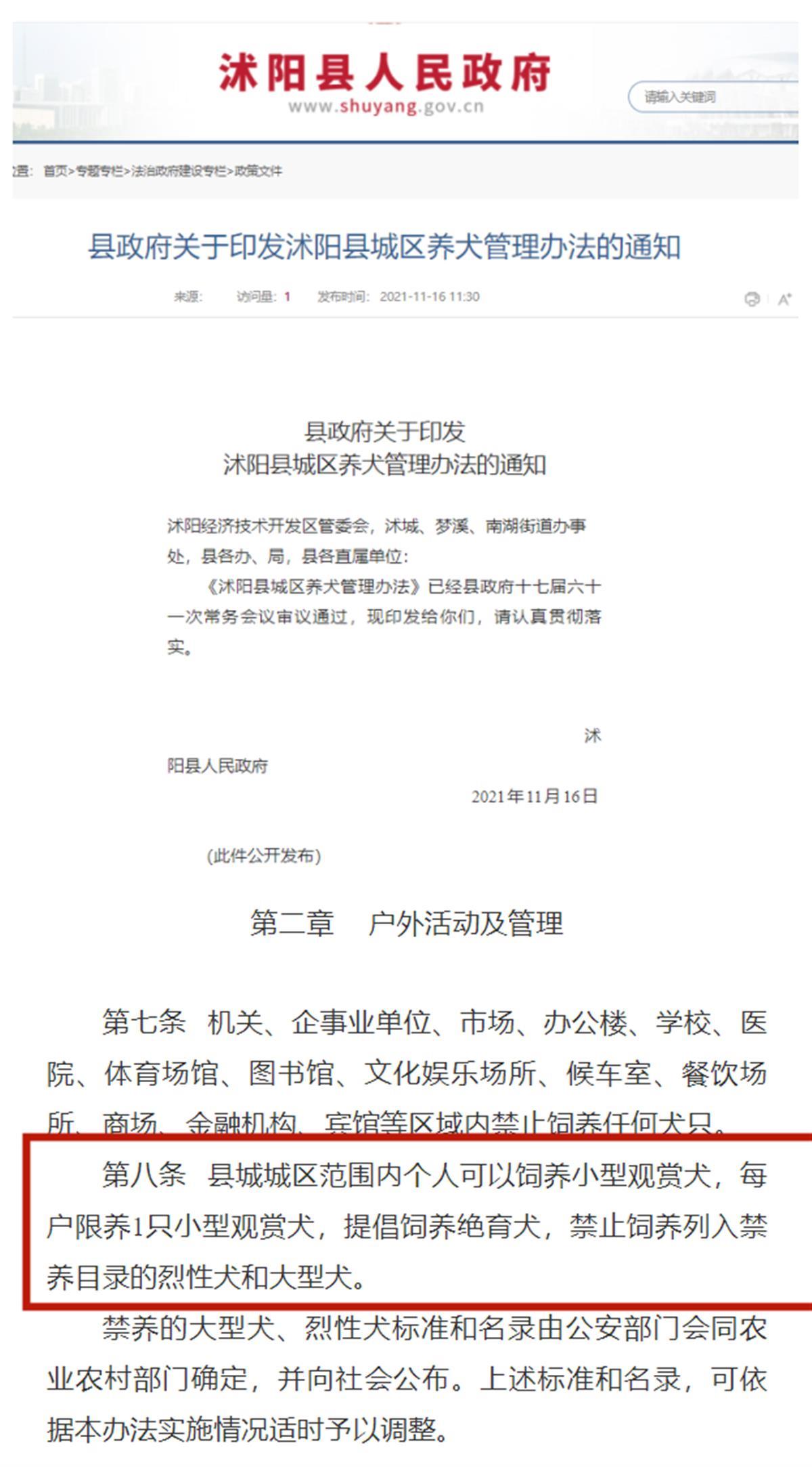 《沭阳县城区养犬管理办法》相关规定(来源:沭阳县人民政府官网)