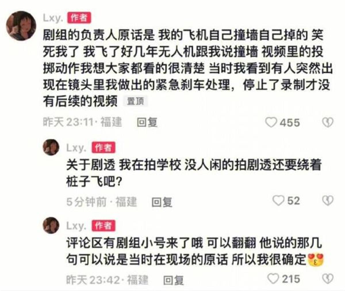 因为是人气小生、小花主演的偶像剧,《偷偷藏不住》从开拍时就备受关注,因此,学生爆料此事后,很快就引发了网络争议。该学生表示,自己平常就喜欢用无人机拍摄校园,当天也只是在拍摄学校,拍摄的那栋楼也并不是剧组的拍摄场地,实在不明白剧组为什么要砸他的无人机。他还透露,剧组的负责人说是他的无人机自己撞到墙掉下来的,对于这种推卸责任的说法,他完全无法接受。