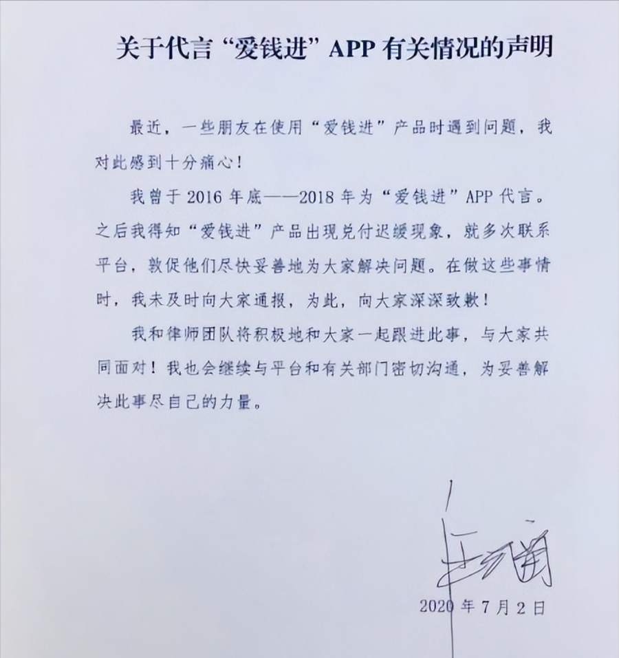 著名节目主持人汪涵曾于2016年-2018年期间代言“爱钱进”APP事件,暴雷后汪涵本人及团队一直在联合相关部门、督促平台解决问题,委托律师团队积极跟进等。
