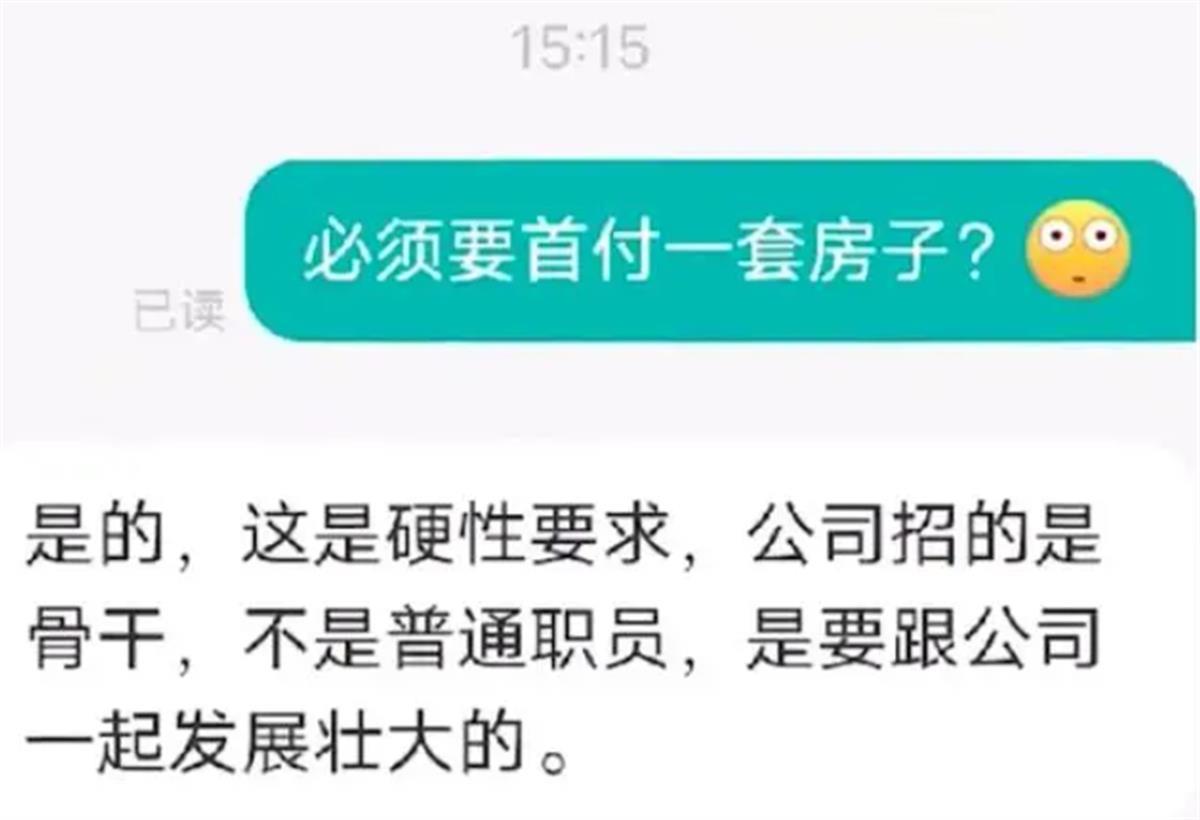 一般人找工作,就是为了打工赚钱奋斗买房,而这家公司却要求员工先买房才能找工作,甚至为了让员工买房,不惜垫钱付首付,很有点“套路贷”的意思了。买不买房应该是个人的自由选择,一个人是否买房,与他的专业技能、工作能力、岗位适配度等毫无关系,客观上对他的工作也不会产生任何影响。