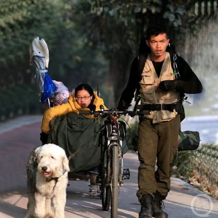 在路上,丁一舟给人理发、收庄稼和搬砖,什么体力活都干过,靠着挣取的报酬,他带着妻子走完了预定的路程。他提及的最大困难,是两人走在荒郊野外时,自行车突然爆胎。
