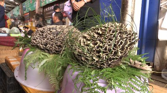 张师傅说,老人捡到这两朵菌后,就送来给他们吃,但张师傅心想,这么大个头的干巴菌难得一见,自己也不舍得就这样给吃了,于是,特意从曲靖跑来昆明,拿到木水花野生菌市场“展览一下”,让大家都来见识见识,当然,如果有哪位客人希望拥有,他也会割爱于人。