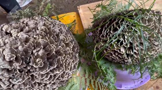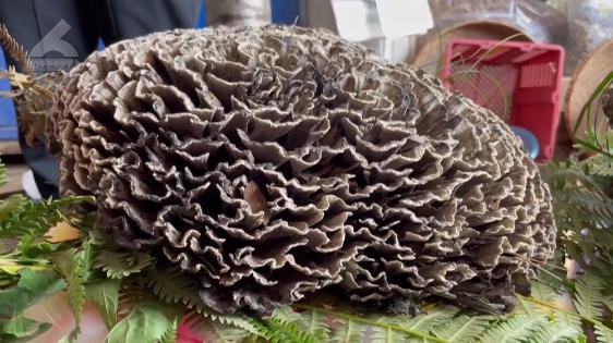 张师傅:“是老人上山去地里面除草 ,走路时发现的。大的这朵2.7公斤,小的1.9公斤。我们家老人都是第一次见,几十岁的老人也是第一次见。”