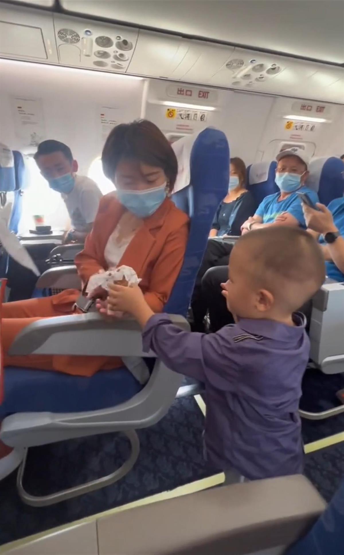 网传视频显示,在一飞机客舱内,一个小宝宝踉踉跄跄地在飞机过道上给乘客发礼物,他的妈妈猫着腰,拎着一个袋子把礼物递给他。视频配文称:“这一次是宝宝跟在妈妈身后,给大家送糖果和耳塞啦。”