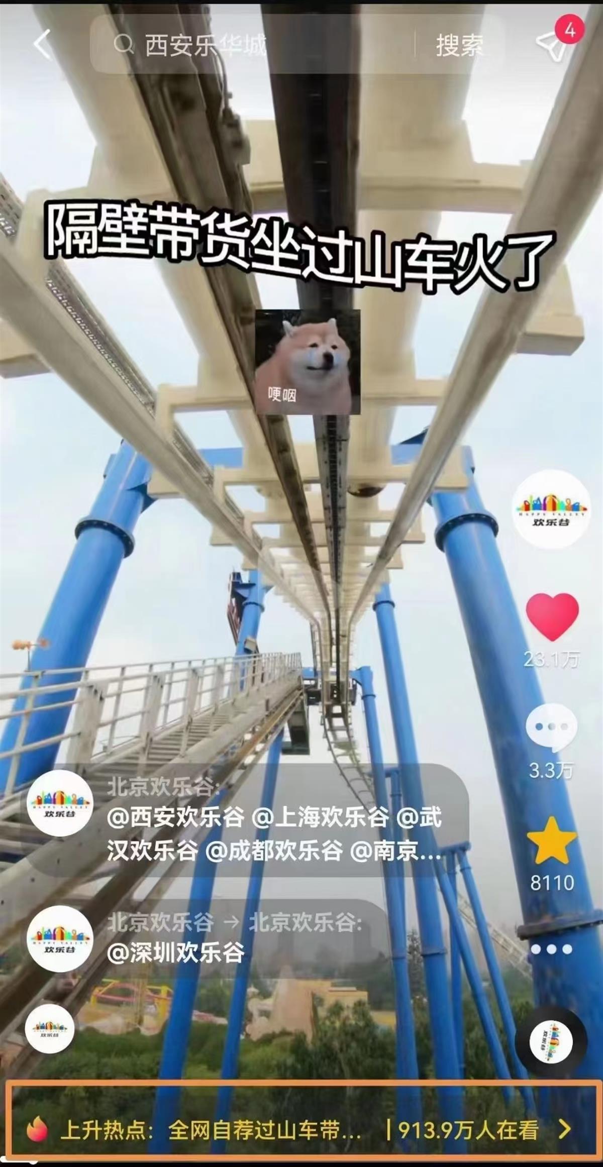 相关短视频页面(图片来源:北京欢乐谷)