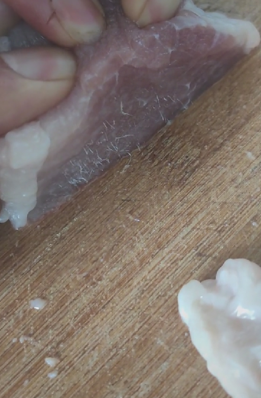 一位养猪场老板向记者介绍,这种情况确实比较少见,因为他见到的都是新鲜宰杀的猪肉,在按压和撕扯过程中,肉眼几乎看不到这种丝状物。