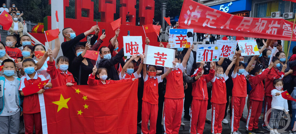 ▲泸定县城群众欢送森林消防队员。图片来源/四川森林消防总队