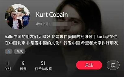 王家卫是知名度非常高的导演,也时不时会在社交平台上活动一下,也因此这一“李鬼”账号的身份很快就被拆穿,但还有些冒充名人的账号就看得人得愣一愣了。日前,小红书上曾冒出一名自称是来自美国的摇滚歌手科特的用户,在个人简介中说“现在住在中国北京”,这迷惑性就有点高了,对于不熟悉美国摇滚乐坛的人来说,科特•柯本是一个非常陌生的外国人,分不出真假。而实际上这位来自涅槃乐队的摇滚歌手已经在1994年过世,在“李鬼”身份被戳穿后,这一账号很快改头换面,又变成了著名球员埃里克•坎通纳。这一账号可能只是在做恶搞,毕竟放眼互联网,用名人名字做社交账号的人相当的多,这样的恶搞也不算少见。不过还有的假冒名人账号就不是太妥当了,比如有位身份不明的网友,顶着已故著名导演希区柯克的名头带货。