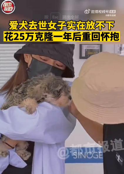 近日,一则“女子花25万成功克隆去世宠物狗”的新闻上了热搜,据河南电视台《都市报道》报道,8月9日,北京一女子花25万成功克隆自己去世的宠物狗“Rara”,爱犬去世一年后,又重新回到了她的怀抱。她忍不住抱着克隆的狗狗亲了又亲。狗狗主人说因为当时爱犬走的那一刻“心里真的是实在是放不下”,所以选择了克隆。