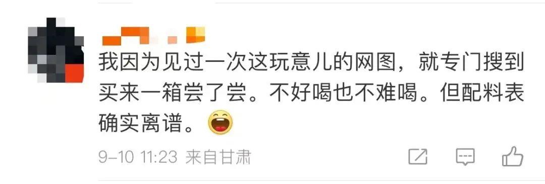 有网友被这个离谱的配料表吸引,买来尝了尝,味道“不好喝也不难喝”。
