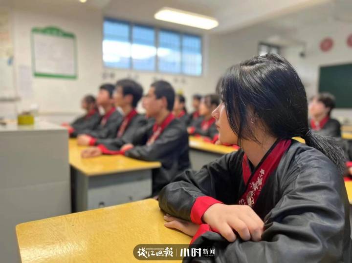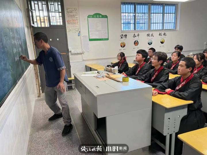 9月18日下午4点,浙江衢州应用技术学校的一间教室内,46岁的毛建飞带着一群穿着汉服的学生在吟咏《诗经·卫风·木瓜》。