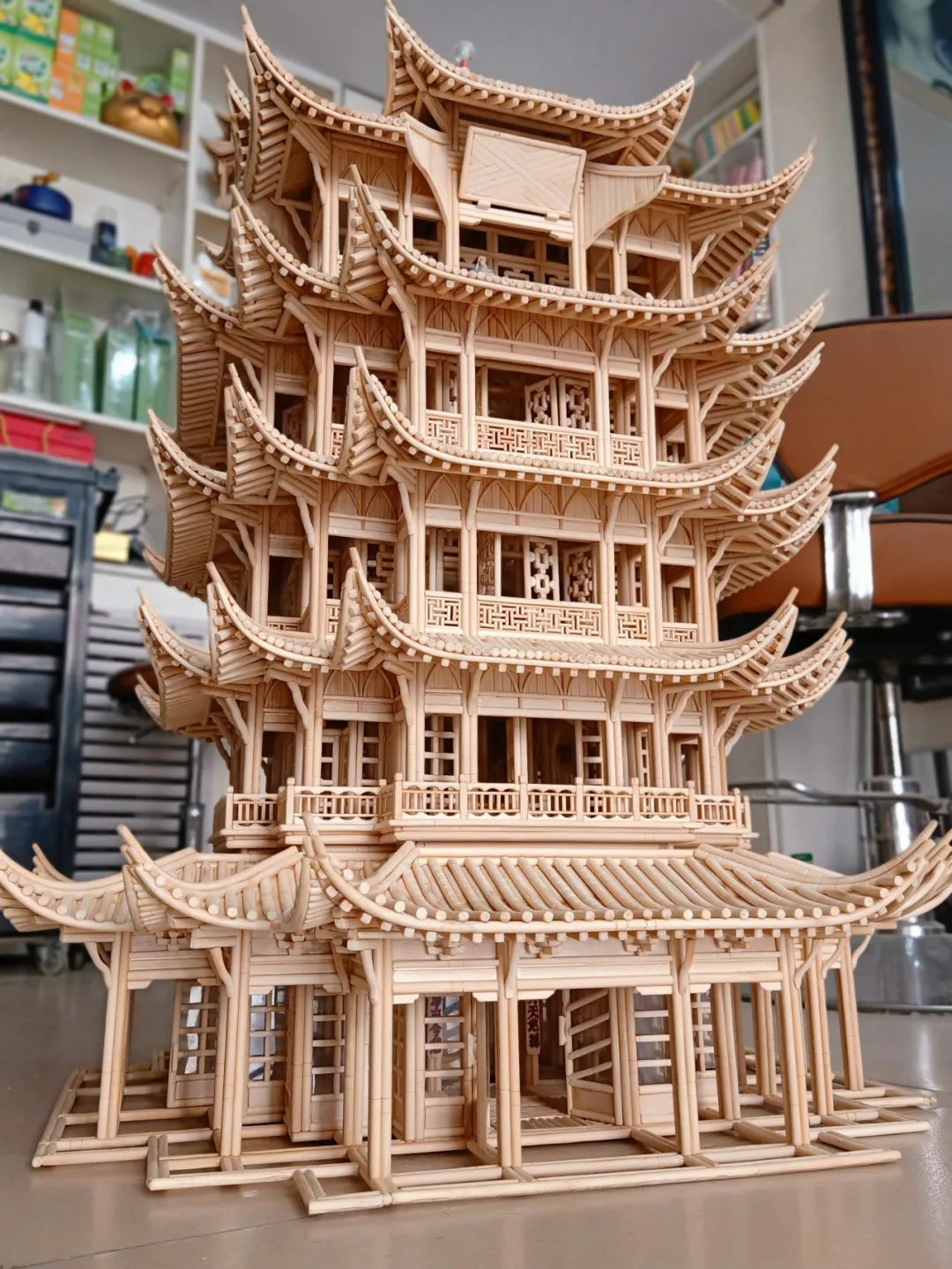 段宪永用筷子手工制作的黄鹤楼。来源:受访者