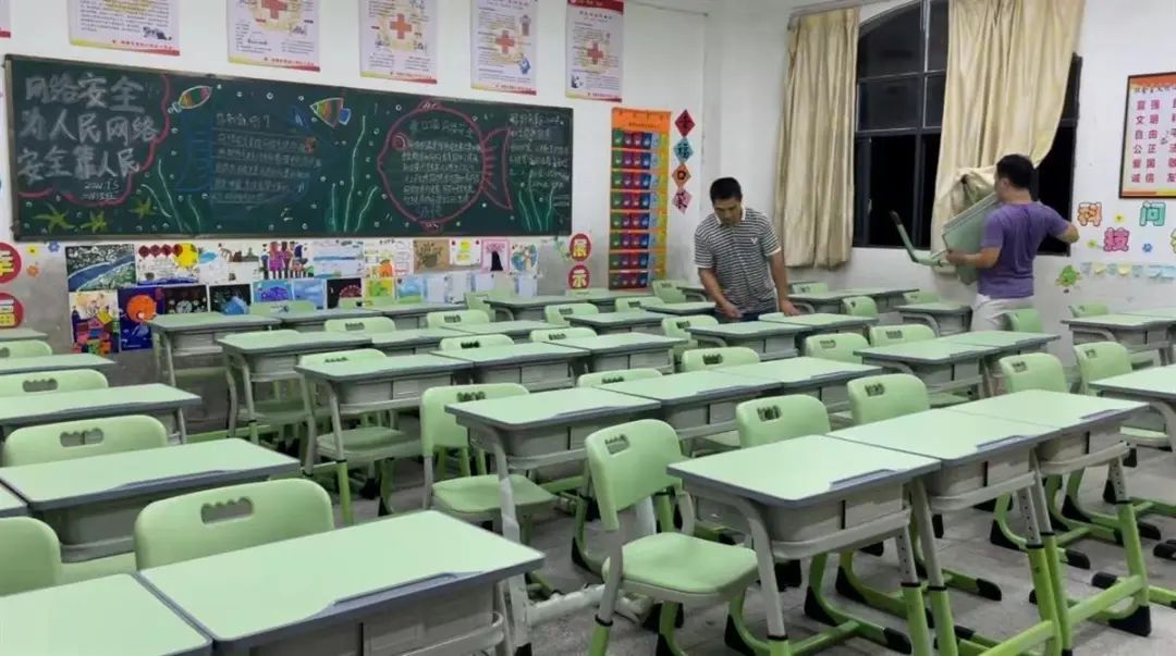 9月22日,曾先生女儿的班主任老师告诉极目新闻记者,她班上的桌椅的确已经全部换新,同学们都很高兴,家长们也对曾先生十分感谢。“原来的桌椅也还能用,但这位家长可能是想让孩子们使用得舒服一点,就捐了新的。换下来的旧桌椅也没有扔,都放着了。”