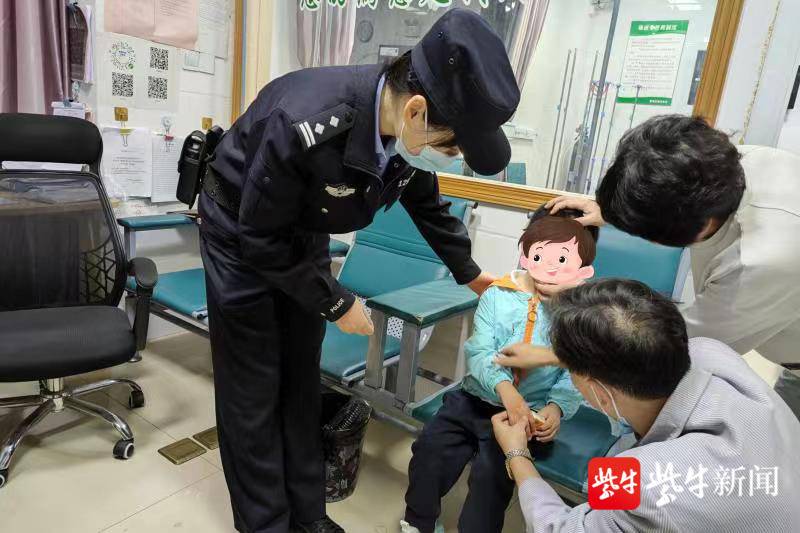 接报后,值班民警立即赶往现场,只见男孩哇哇大哭,直呼要找妈妈,且手上和衣服上沾有不少血迹。经过仔细检查,民警发现男孩身上并无明显外伤,血迹系孩子流鼻血产生,遂立即带着男孩前往附近的诊所进行清理治疗。