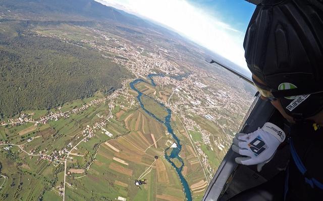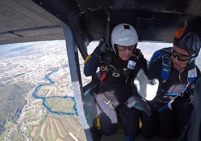 9月24日,88岁的易卜拉欣·卡莱希在波黑比哈奇参加跳伞比赛。新华社/路透