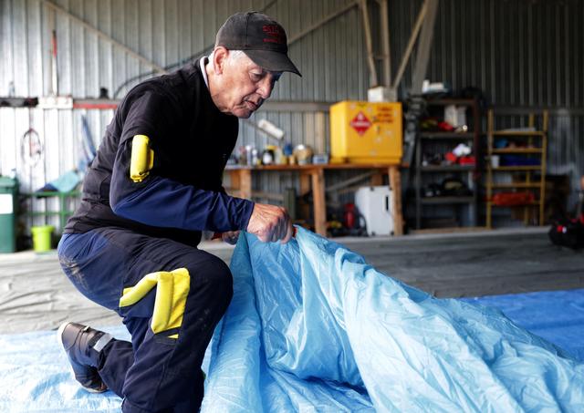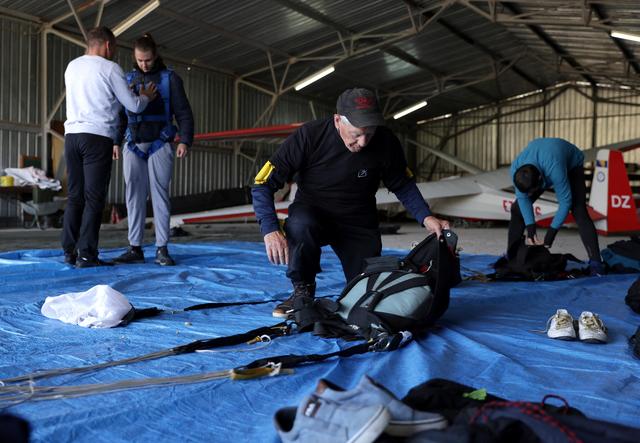 9月24日,88岁的易卜拉欣·卡莱希在波黑比哈奇参加跳伞比赛时做准备工作。新华社/路透