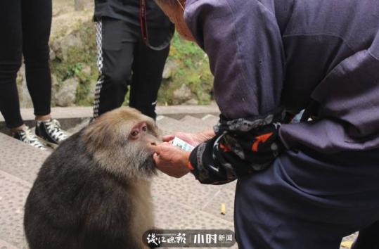 猴子被放养到大梁山之后,除了吃山上的野果,它还会每天早上、下午各一次雷打不动到村里找吃的,村民时不时地会喂它一些牛奶面包之类的。久而久之,村民都跟它熟悉了,便取名为“星星”。