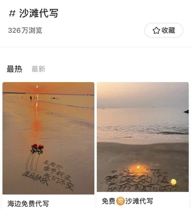 “我在涠洲岛,用心写用心拍,为您打造一份专属浪漫”...在知名种草平台小红书APP上检索关键字“沙滩代写”,便能见到不少博主提供在沙滩上为人代写祝福语的新生意。博主们晒出的图片上,夕阳、沙滩、海浪与印在沙子上的祝福语构成一幅美丽画卷,吸引着居住在内陆无法看到海的年轻人。