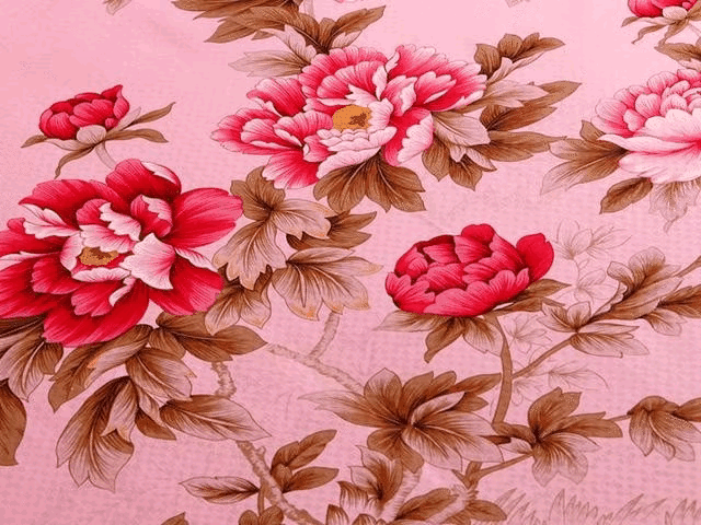 盛放的牡丹、鲜艳的色彩、熟悉的材质