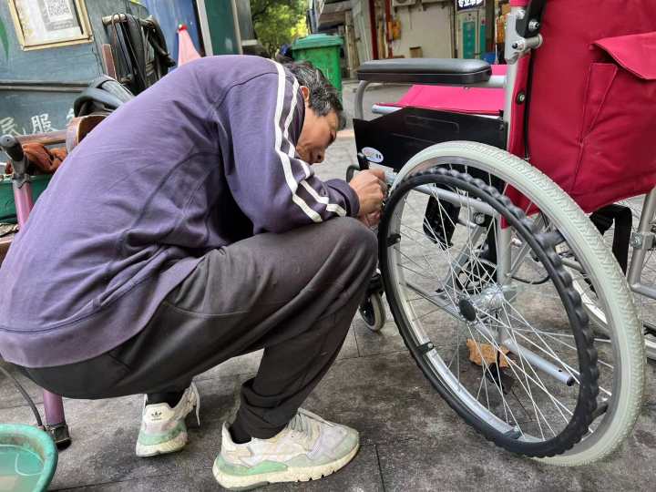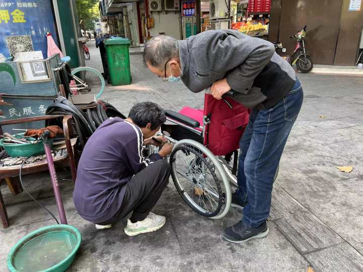 孙增华会告诉你,哪些人需要他和这样的修车铺——比如有大清早赶着上班结果接送孩子的人车子坏了,火急火燎找来的;有住在附近的人难为情地问他能不能去家里帮忙修一下车,因为他们年纪大了推过来实在吃力;也有人用私家车载着坏掉的车子、轮椅找过来;还有小朋友的童车买回来,年轻的家长不会装也找来他帮忙;偶尔会有年轻人带着锻炼用的车子过来……