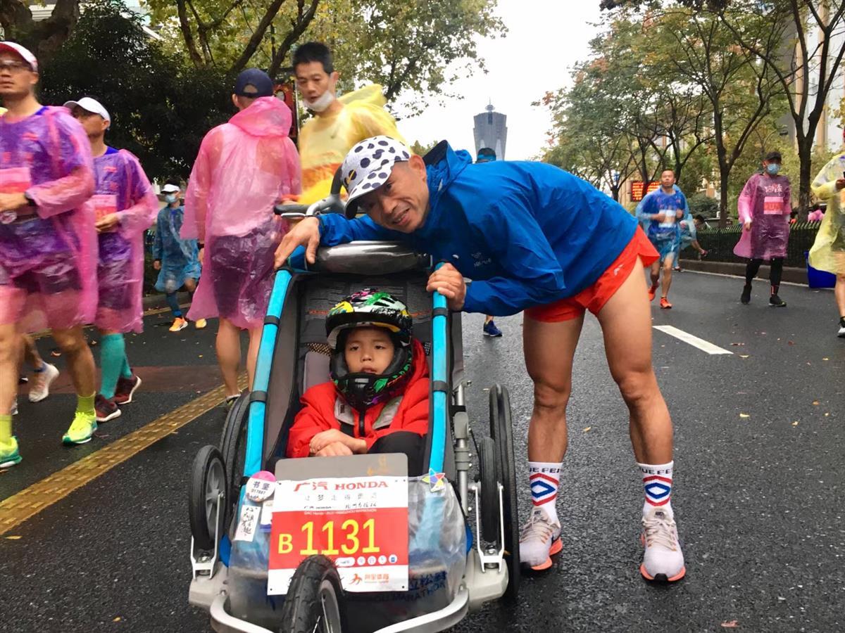 从此我决定,哪怕你走不远,但我可以把双腿和手臂借给你,带你去看看外面的世界,我们可以通过跑马拉松的方式,去感受运动的快乐,去感受这个世界,更重要的是,这是我们父子俩一起完成的。