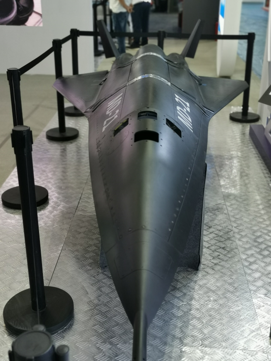 航展上展示的MD-21宽域高速飞行器。根据展板介绍,该飞行器长4米,宽1.5米,重约300千克,是一种临近空间宽速域、宽空域技术实验飞行器。