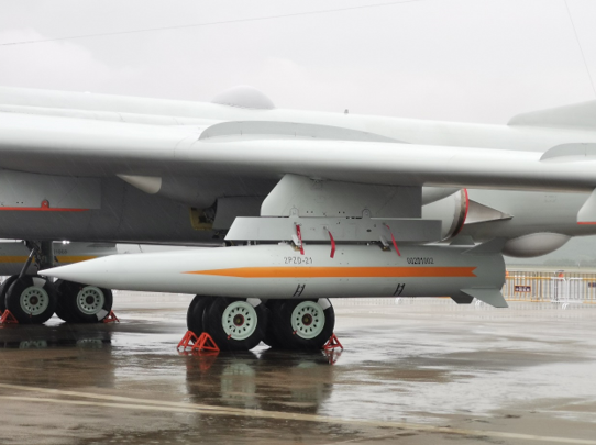 轰-6K携带神秘导弹现身航展,引发热议。本文图片 澎湃新闻记者 谢瑞强 图