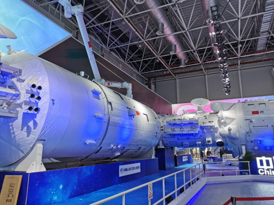 中国航天科技集团带来了本届航展上的重磅展品——1:1空间站组合体展示舱,全景展示空间站T字基本构型,让大众在地面就可以近距离了解中国人的“太空之家”,体验中国载人航天的最新科技成果。