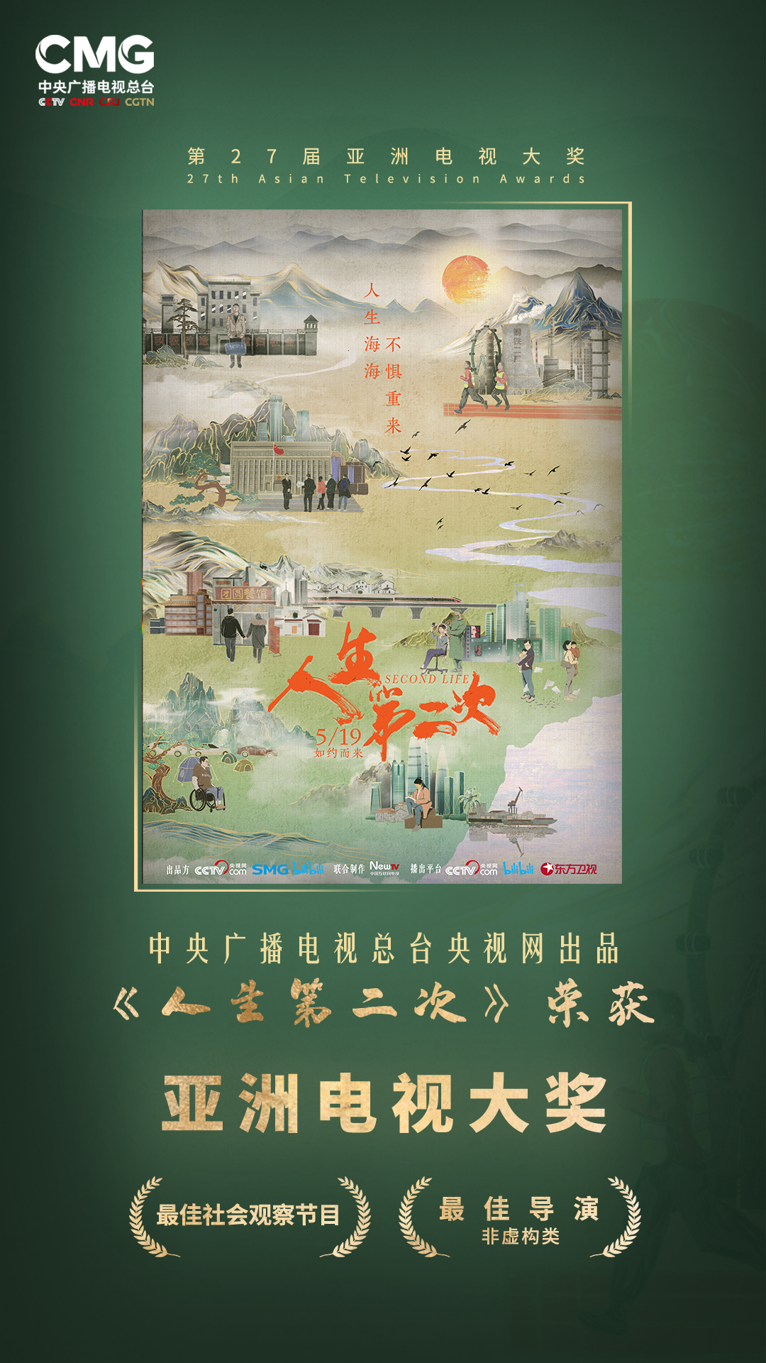 第27届亚洲电视大奖(AsianTelevisionAwards)近日在新加坡揭晓。由央视网、SMG、哔哩哔哩联合出品的人文纪录片《人生第二次》荣获“最佳社会观察节目”、“非虚构类最佳导演”两项荣誉。这也是该纪录片继荣获2022年亚广联奖电视类“亚广联视野奖”评委会特别推荐荣誉后再一次获得国际级奖项。