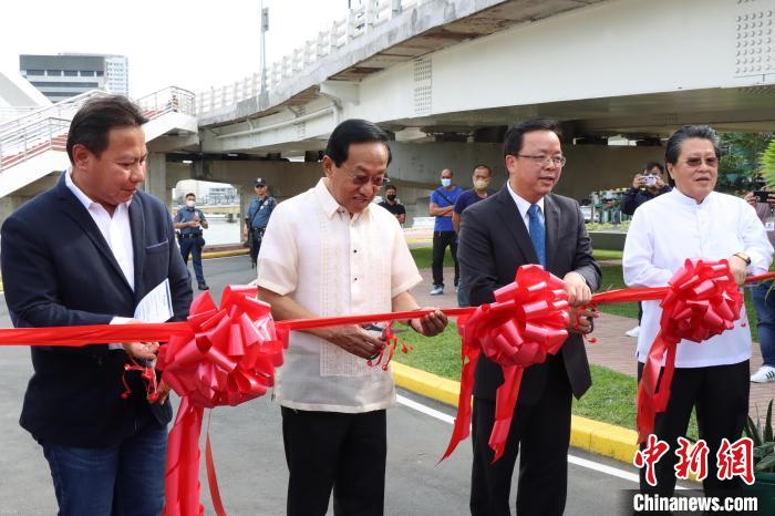 中新网马尼拉1月20日电(牛恒佳张兴龙)中国援菲律宾比诺多-因特拉穆罗斯(B—I)大桥项目举行绿道公园竣工及人行步道开通仪式。中国驻菲律宾大使黄溪连、菲公造部长博诺安、菲华商联总会副理事长施东方出席仪式并致辞。