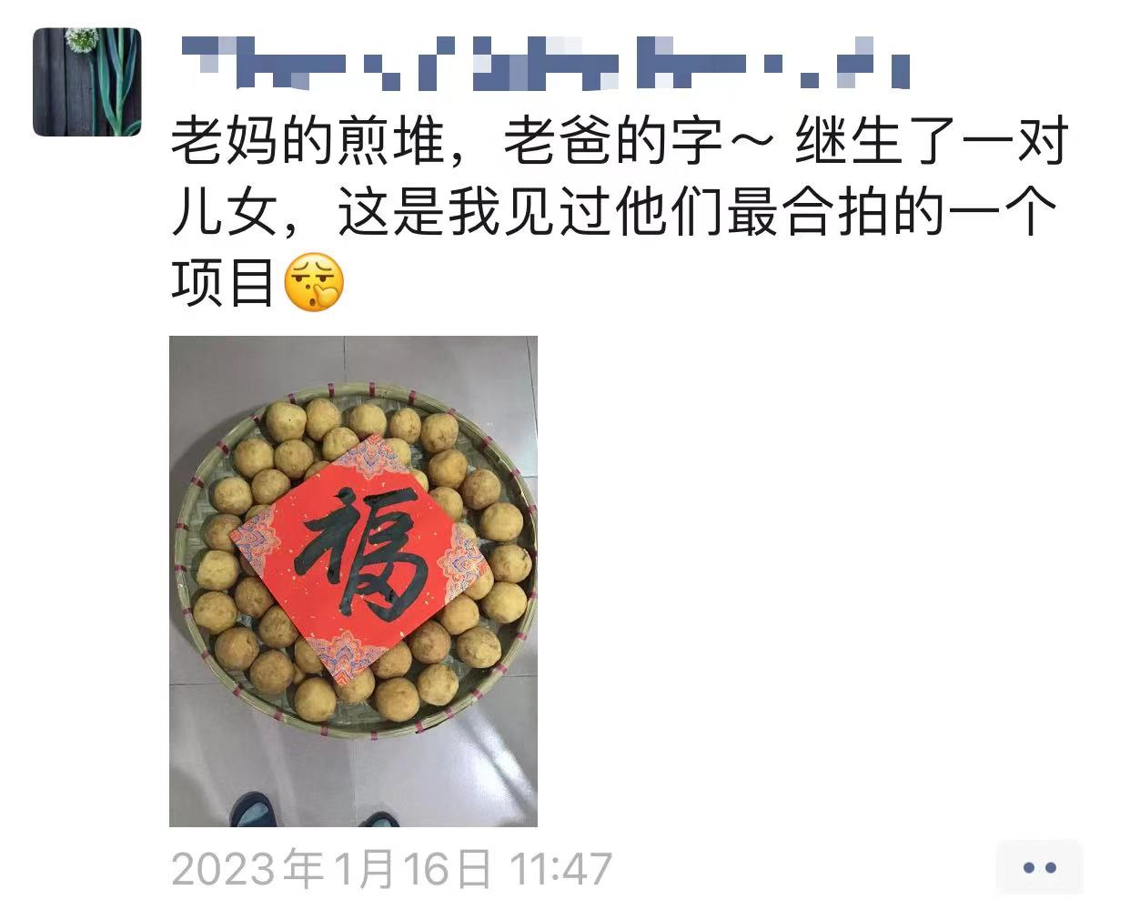 过年前,在广东,顺德人家都会准备起炸货糕点。煎堆就是一种必备炸货,顺德人说,“煎堆碌碌,金银满屋”,这种圆滚滚、黄灿灿的炸货象征着来年的富足。除夕前5天,林嘉佳(化名)的妈妈做好了一盆煎堆,在她的鼓动下,爸爸又写了福字覆在上面。