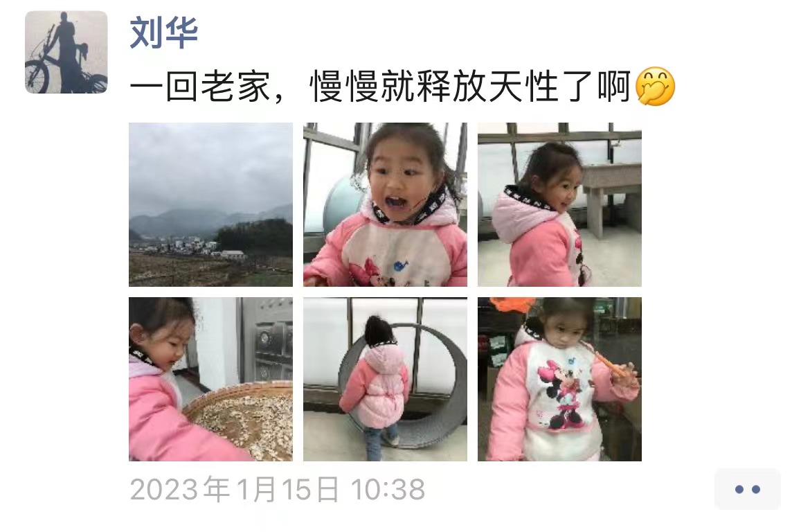 腊月二十四,是南方传统的小年夜。对于刘华三岁的女儿慢慢来说,这是她第一次跟着爸爸回到安徽旌德老家过小年。刘华捕捉下女儿疯玩的瞬间,分享在朋友圈,配文:“一回老家,慢慢就释放天性了啊。”回到奶奶家,打小在城市里长大的慢慢看什么都新鲜。不管是家里盛瓜子的竹筛,还是放粮食的稻仓,又或者是用来捞鱼的小网兜,她都玩得不亦乐乎。