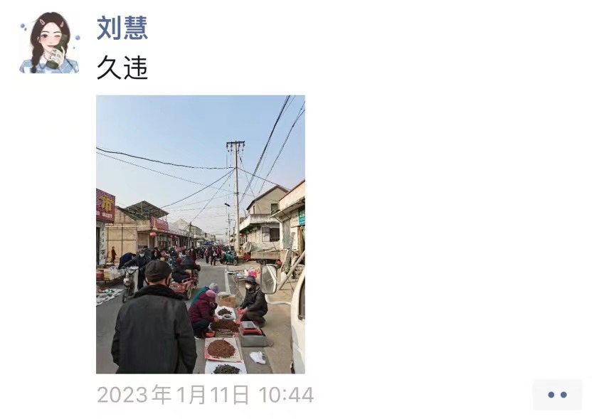 这是疫情以来刘慧第一次回老家过年,她在朋友圈发出一张热闹的赶集照片,感慨道:“久违!”