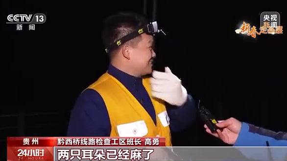 黔西桥线路检查工区班长高勇:两只耳朵已经麻了。