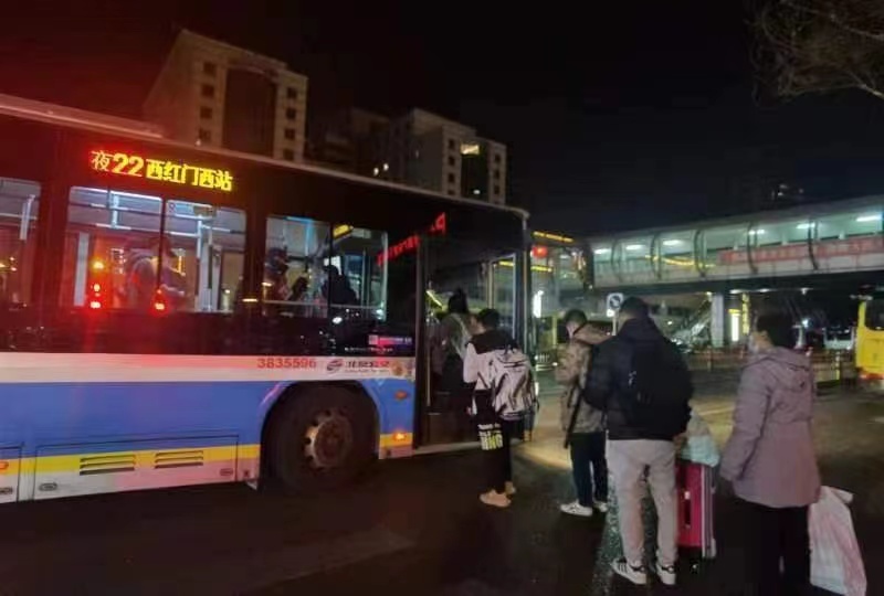 北京公交集团第二客运分公司运营管理部工作人员高金宝表示,今年的春运返京高峰期间,公司采取了多项措施来保障夜间抵京旅客顺利出行。