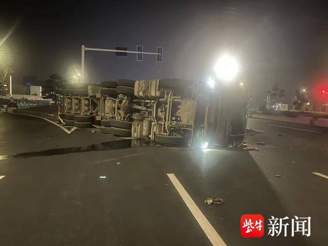 扬子晚报网2月6日讯(通讯员杨昌平记者梅建明)近日,南京江宁开发区交警中队接到报警,称在辖区将军大道与吉印大道路口处,发生了一起单方面的交通事故,一辆大货车翻了。