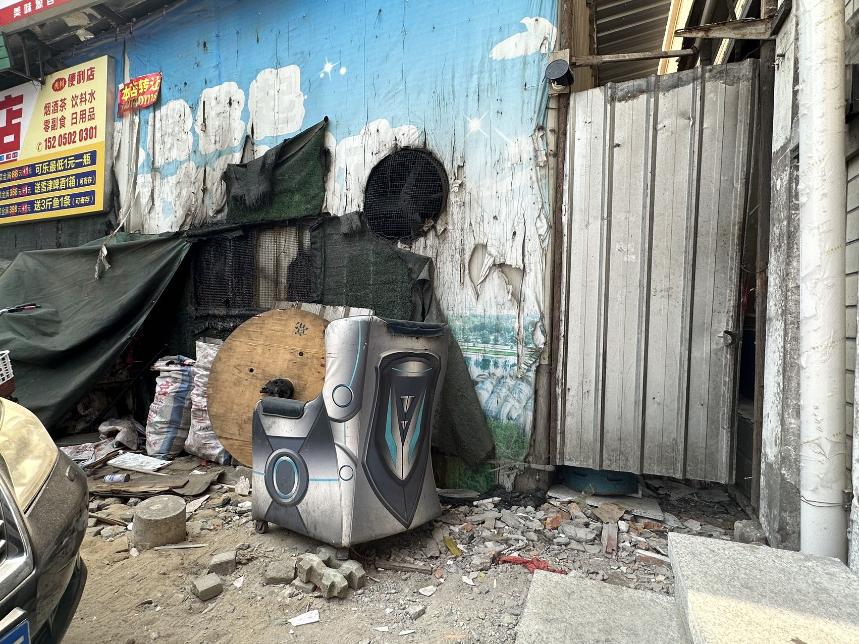 涉事建筑物堆放杂乱,可以看见里面存在一个倒下的煤气罐。澎湃新闻记者吕新文图
