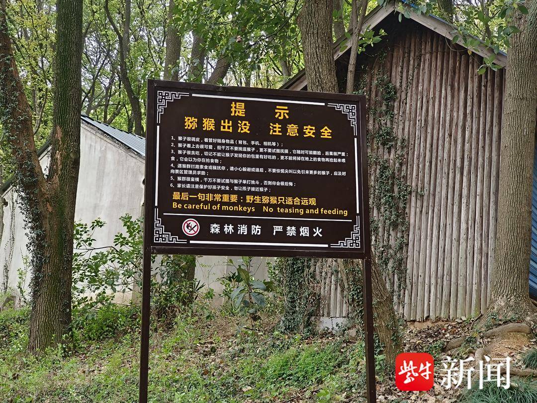 记者看到,十几名游客正站在路旁看猴子、拍照,还有游客正谈论着猴子打人的视频。身穿蓝色衣服的工作人员许先生拿着一根棍子巡逻。“这个棍子只是起到警示作用,猴子看到棍子,可能会有躲闪的意识。”许先生告诉记者,提醒标牌当时就在离被猴子掌掴的女子五米不到的地方。