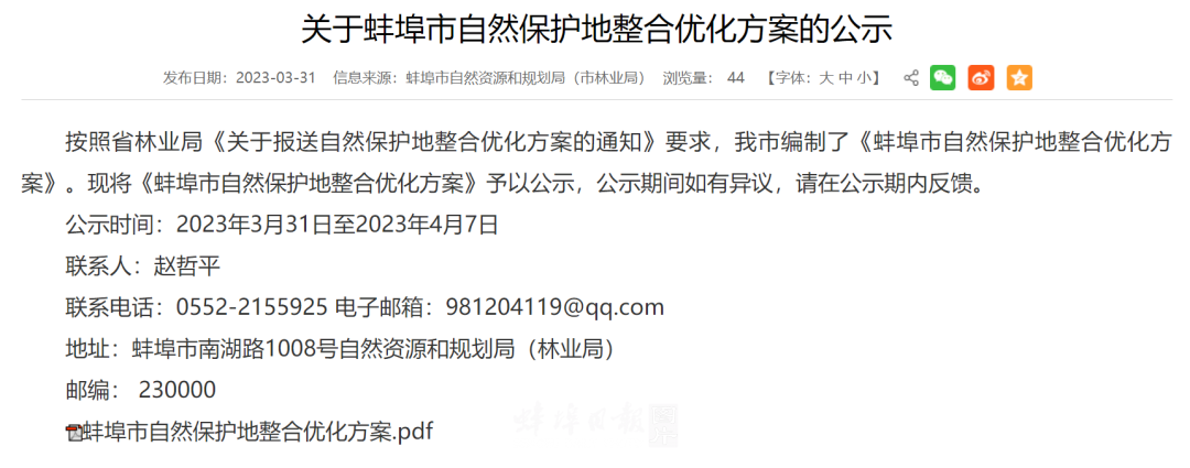 据了解,自然保护地整合优化是构建以国家公园为主体的自然保护地体系的重要内容,可以有效解决自然保护地重复设置、空间重叠等问题,提升自然保护地生态系统多样性、稳定性、持续性,完善自然保护地体系空间格局,使之更加契合蚌埠市区域人口、自然地理和资源禀赋特征。