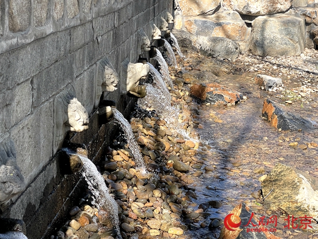 在大运河源头遗址公园的九龙池,记者看到,9个龙头须发皆现,惟妙惟肖,龙头自石壁内向外探出,水流喷涌而出,再汇聚于深潭,泉涌摇荡,在春日里波光潋滟。大运河白浮泉遗址管理服务中心主任叶建伟介绍,九龙池的池壁以花岗岩石砌成,龙首均为汉白玉石雕成后嵌入石壁,因水流出处有九个龙头,取名九龙池,又有“九龙戏水”“九龙喷玉”之称。