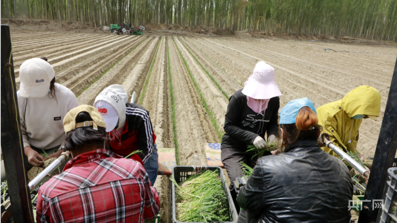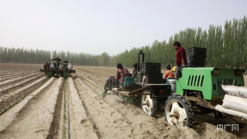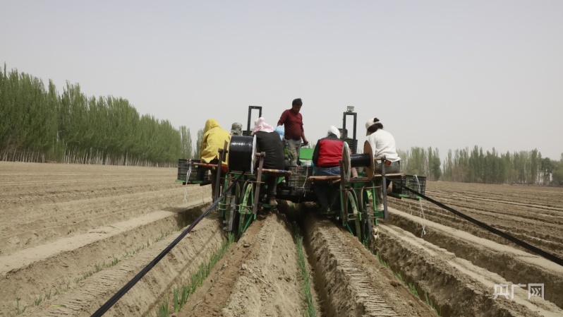 大葱移栽机械正在田间作业(央广网发和田市融媒体中心供图)