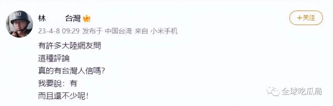 为此,这名台湾的爱国网友专门在个人社交账号上发布了一个帖子进行回复,就是文章开头那个截图。