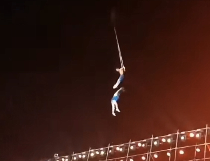 再反观这场经过报备的演出,吊车高升,上无配备安全扣,下无拉好防坠网,这根缺失的保险绳也拉出了整个行业的安全隐患。有杂技团资深演员表示,杂技中的绸吊表演是没有保险绳的。“表演绸吊的两个人,会有怀抱、翻滚等动作,假如身上系了绳子,会直接影响动作的施展。”据其表述,这么多年来,无论是国内还是国外,绸吊表演都是没有保险绳的。在空中飞人项目中,会有高空抛人的动作,表演时下方会进行布网确保安全。但绸吊项目的安全则要靠身体的核心力量,特别是与搭档之间的默契和信任。