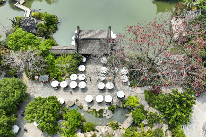 黎明湖公园里的大众茶馆供市民饮茶、休憩,尽享春日美好时光(央广网发谢贵明摄)