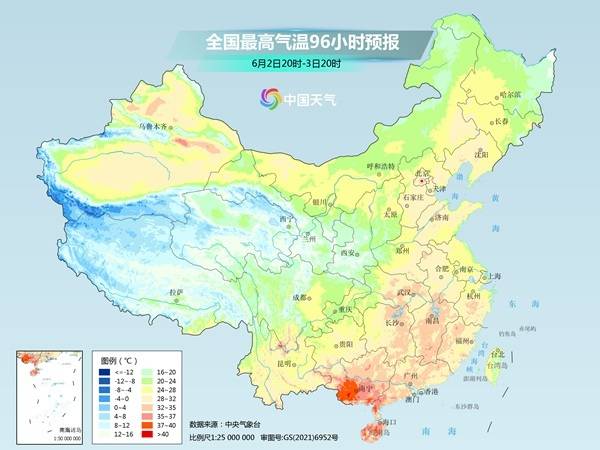 预计未来三天,华南大部、江南大部、贵州南部、云南北部和南部、四川南部等地有35℃以上高温天气,部分地区可达37~39℃,局地40℃。特别是广东、福建等地将是全国最热的区域之一。