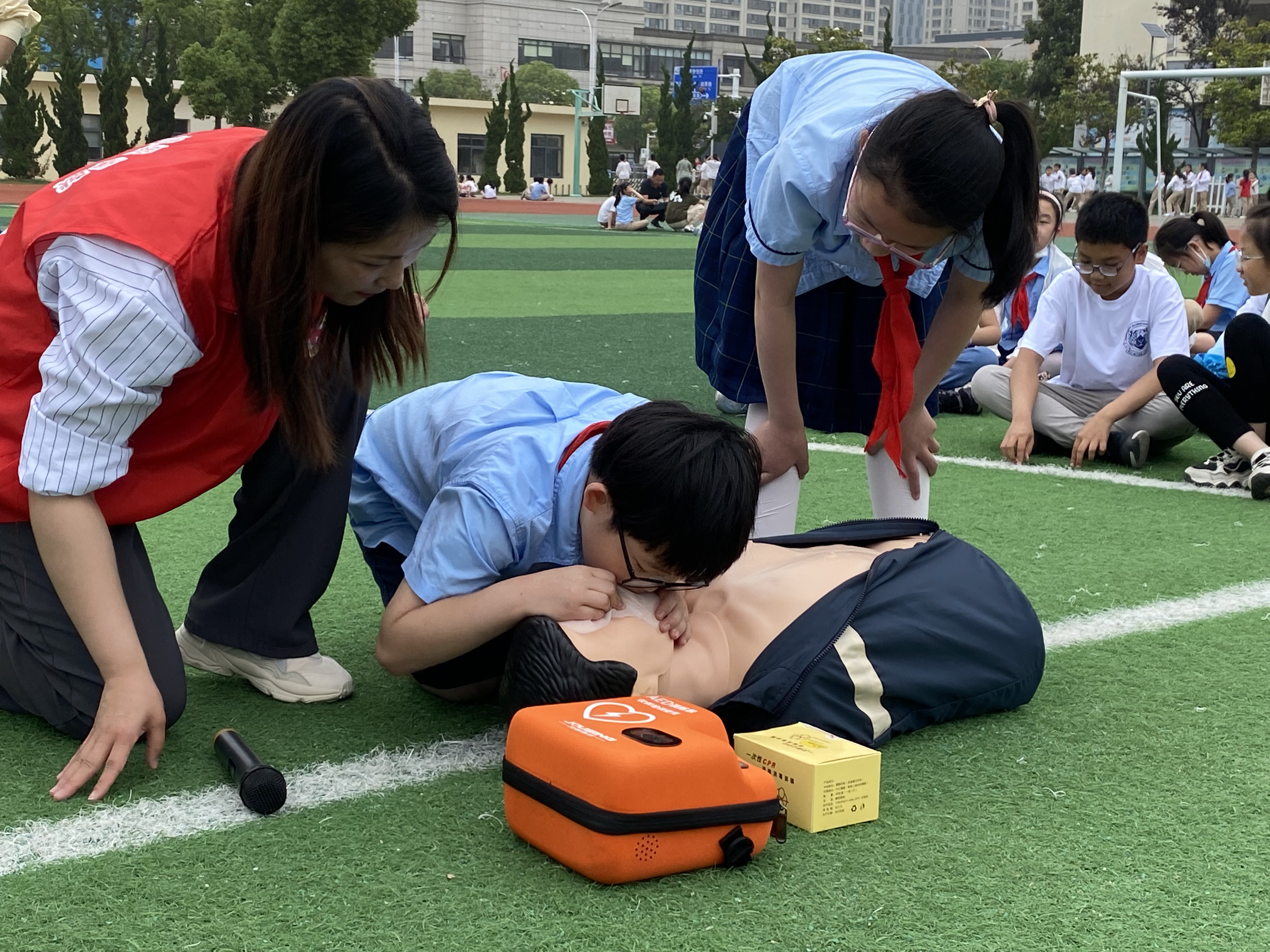 救援之前要判断伤者是否还有心跳和呼吸?心肺复苏抢救过程中,如何与救援对象沟通、进行按压?人工呼吸的要点是什么?……这些都是必须重视的救援细节,在培训现场,红十字会讲师使用人体急救模型一一指导学生进行心肺复苏、人工呼吸等救护技能实操训练。同学们认真观摩急救操作,一个个踊跃参加动手操作,在老师的指导下学习正确的急救动作要领。