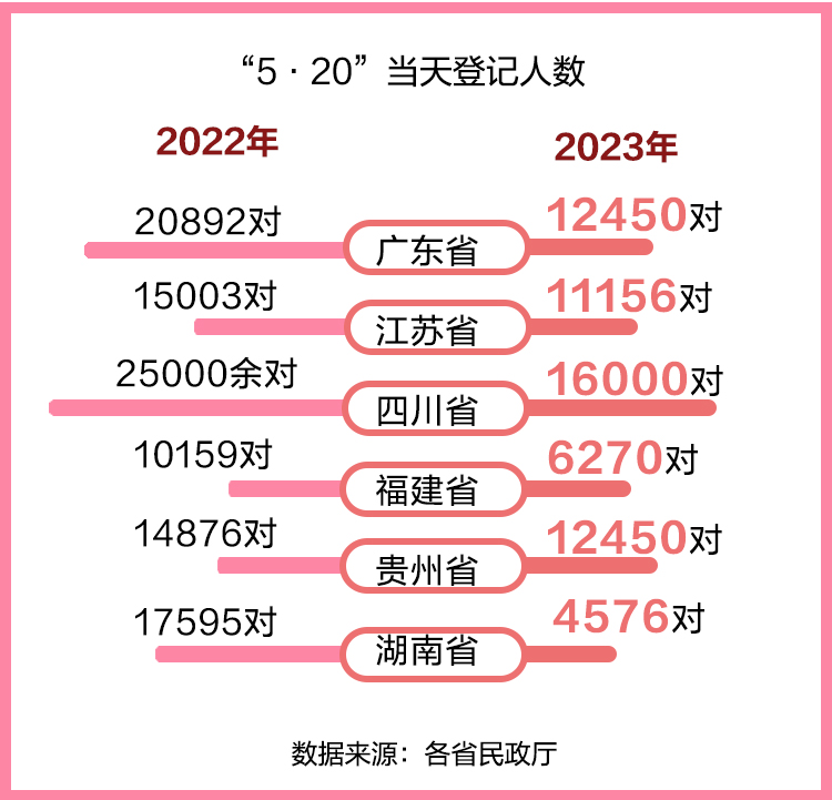 婚姻登记“跨省通办”试点刚刚宣布全国铺开,而前不久正是全年结婚登记高峰日“5·20”,多地公布的“5·20”婚姻登记数据相较去年仍大幅降低。