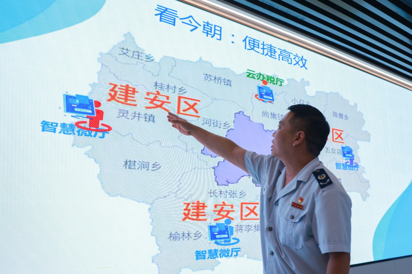 “许昌市区的城市布局,建安区包围着中心城区,如果按照以前的模式,从建安区蒋李集镇到云办税大厅,来回就要80公里。”建安区税务局第一分局局长齐永强说,建安区依据行政区划和纳税人分布情况,科学规划办税资源与空间布局,在四个税源分局布局了“智慧微厅”,提供实名比对、税费缴纳、发票代开、发票领用等多项高频业务的自助办理,纳税人通过“智慧微厅”即可实现“网上办、自助办、随时办、就近办”,满足了纳税人自助办理涉税事项的多元化需求,免去了纳税人时间冲突、往返奔波的烦恼,更加便民利民。