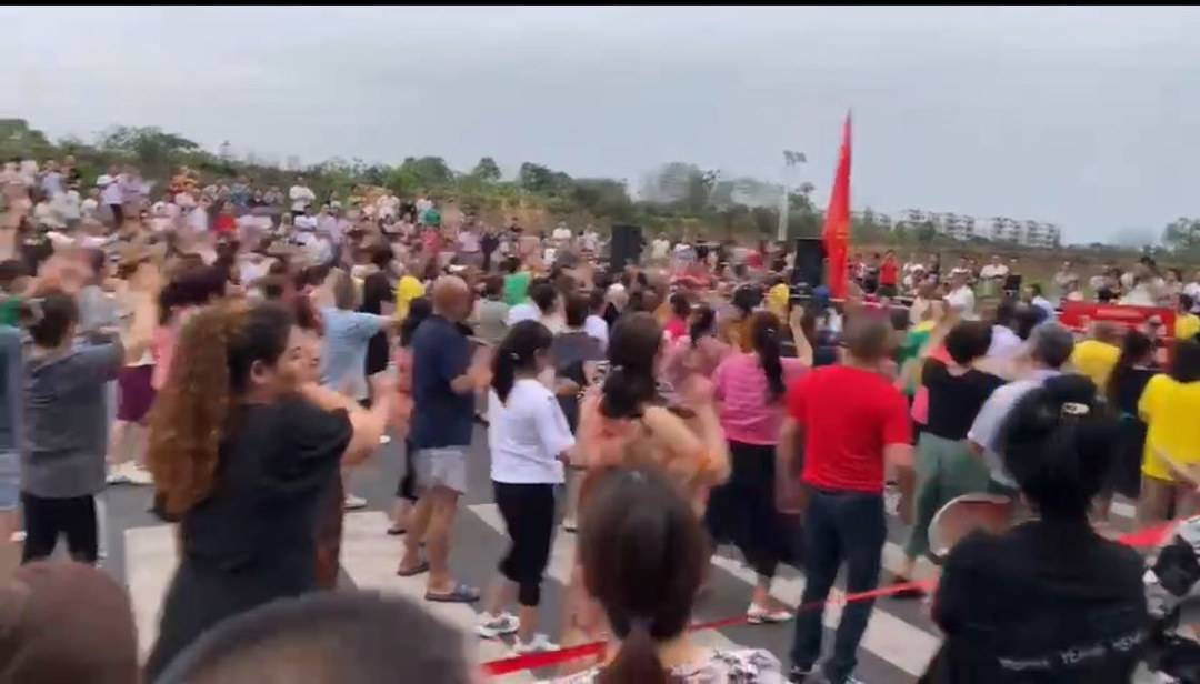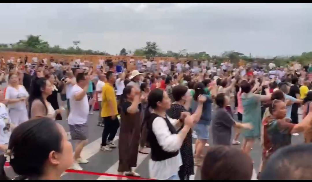 和黄金滩一样,记者走访发现,实际上近段时间在附近多个村子,陆续出现了类似的“蹦迪”场面。以南天寺村一处露天停车场为例,傍晚六点左右,音乐声就已经“咚咚咚”地响了起来,不到半个小时,人群就已经围得水泄不通。