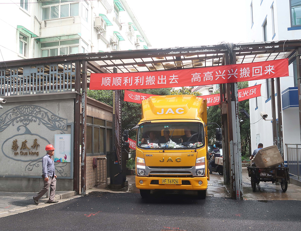 当天,蕃瓜弄小区旧住房改建(拆除重建)项目举行居民集中搬场仪式。这是今年上海体量最大的小梁薄板改建项目之一。蕃瓜弄小区旧住房改造,涉及房屋14幢、门栋31个,共有居民住户1122证。